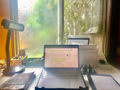 My online class set-up. A desk behind the window really helps me revive after a grueling debate session in the online classes of GLA